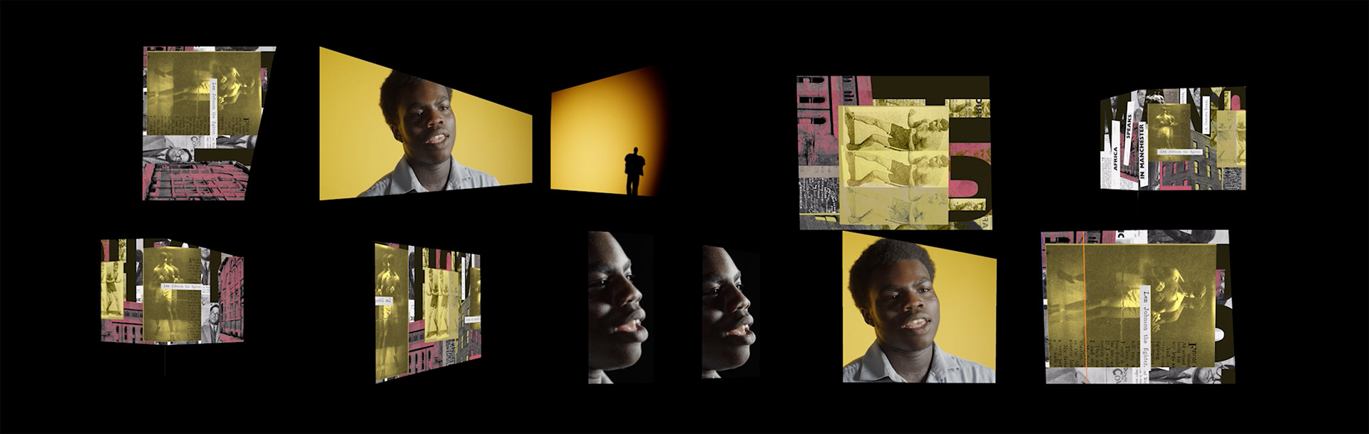 The system needed to allow different sections of the visual narrative to be pulled for display across all 22 screens. The archival collages were designed to feel expansive and continuous, maintaining visual coherence regardless of where they were cut.